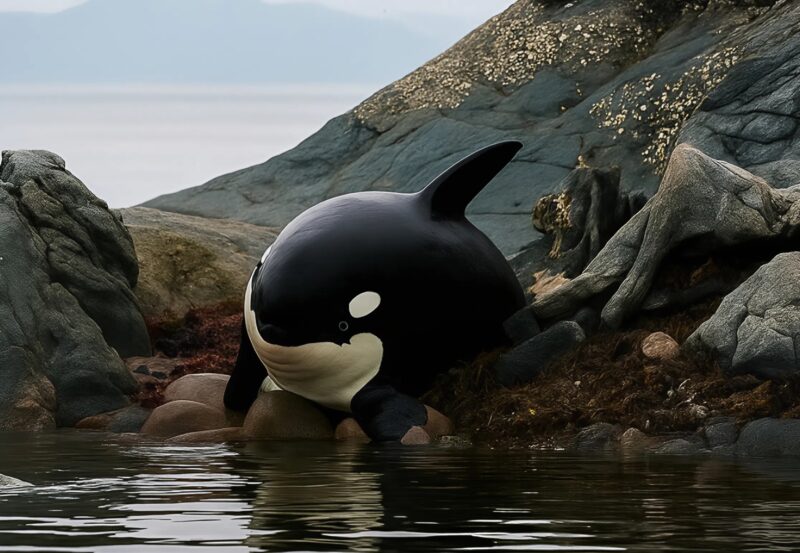The little orca was calling out to her pod while sobbing uncontrollably. Her body had become stuck among jagged rocks after being accustomed to the freedom of boundless oceans.