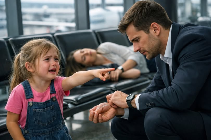 — Don’t worry, she’s okay, — he whispered to the girl. He called airport medical services and stayed beside her, splashing water on her face until help arrived. The little girl held his hand tightly.