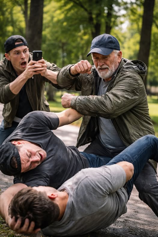 The moment the punch flew forward, the old man instantly stood up and blocked it with a precise movement. In seconds, he grabbed another attacker and threw him onto the grass.