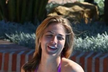Emily is pictured here wearing a sensual bikini and posing in front of a bridge. The stunning model also